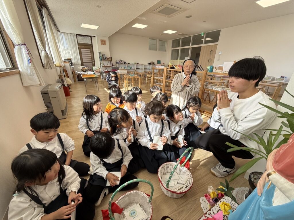 シスターからイエス様のご降誕のお話を聞き、みんなでイエス様におめでとうございますとお祈りをしま... Read More