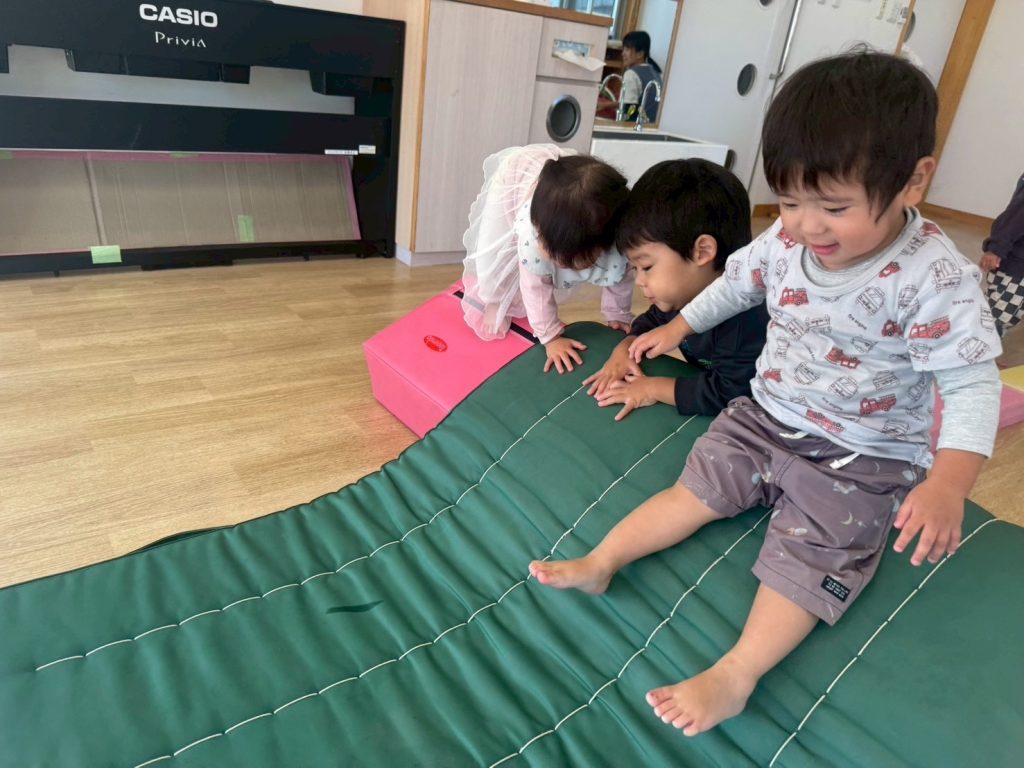 元気いっぱい!運動遊び 10月31日 9月から運動会に向けて体を動かす遊びを通して全身を使いながら楽しんできました。走ったり、踊ったり、登ったり、友達と一緒に力を合わせたり・・・子ども達の頑張る心が大きく育ちました。